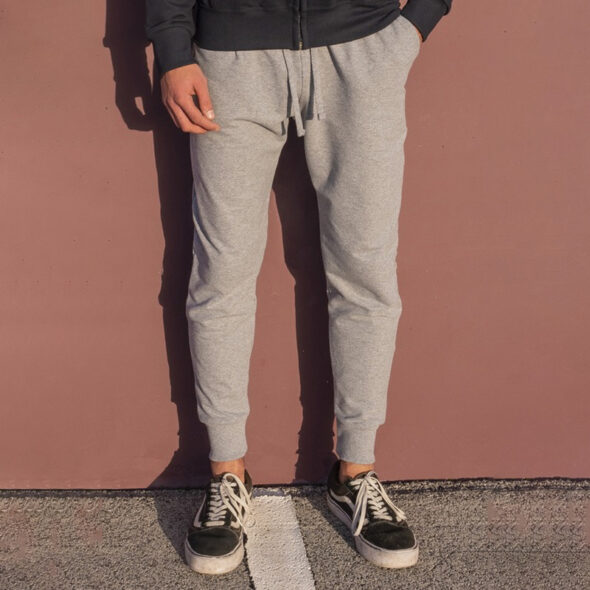 Pantalone in felpa stretch in tessuto french terry. Cuciture ribattute. 2 tasche sport. Fit più ampio sopra e stretto sotto. Occhielli in metallo. Fondo dritto.