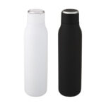 Borraccia con struttura in acciaio inossidabile e isolamento sottovuoto in rame. La struttura termica in acciaio inossidabile 18/8 impedisce la formazione di condensa sulla parte esterna della borraccia e la finitura a spruzzo in polvere alla moda la rende ancora più resistente. Presenta un coperchio ermetico a vite e un anello in lega di zinco.
