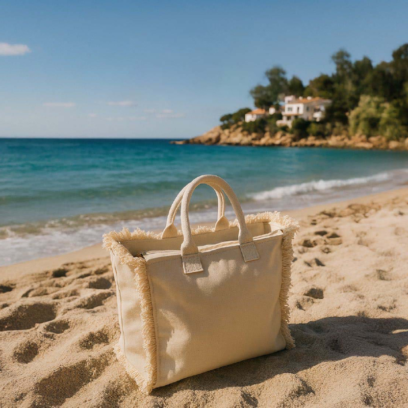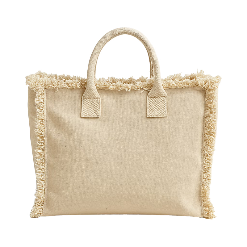 Borsa in cotone da 450 g/mq, dotata di chiusura a zip, tasca interna, soffietto e manici corti per un comodo trasporto a mano.