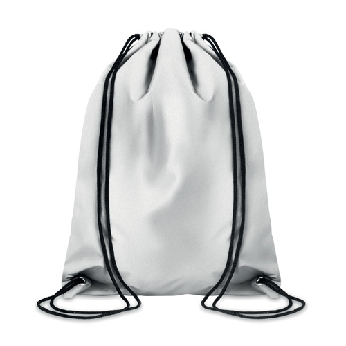 Sacca riflettente in poliestere. Disponibile con cordini neri o in colori neon.