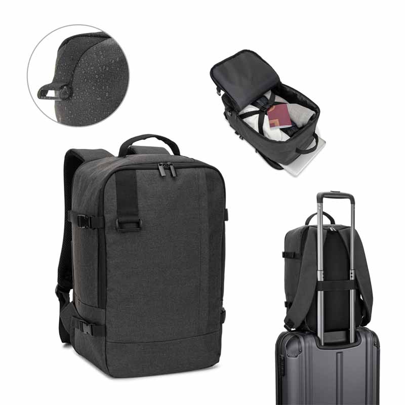 Questo zaino è progettato per soddisfare i requisiti delle compagnie aeree, permettendoti di viaggiare con tutto il necessario come bagaglio a mano. Viaggia in tutta tranquillita. senza doverti preoccupare delle dimensioni del tuo zaino. tasca per computer fino a 14 pollici, Materiale esterno: Poliestere riciclato 600D ad alta densità con finitura idrorepellente. Materiale interno: Poliestere riciclato 210D.