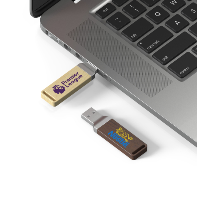 Elegante chiavetta USB in legno d’acero/noce o bamboo e metallo. Confezionata in polybag, possibilità di aggiungere una scatolina/box. Disponibile sia in versione 2.0 che 3.0.