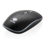 Mouse wireless dal design confortevole e con l’opzione del logo che si illumina incidendolo sul mouse per far meglio risaltare il tuo marchio. Include una batteria ricaricabile al litio da 300mAh che si ricarica in 3 ore. Velocità di connessione 125 HZ tramite chiave di sicurezza USB integrata. Dispone di tasto destro, tasto sinistro e rotellina centrale. La sensibilità del mouse può essere regolata a seconda delle preferenze d’utilizzo. Compatibile con le più recenti versioni di sistemi operativi Windows e Mac.