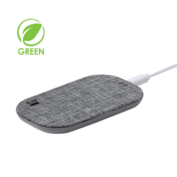 Caricatore wireless con pratico design ovale e funzione di ricarica wireless 10W. Realizzato in poliestere RPET fatto di plastica riciclata. Cavo di ricarica incluso, base antiscivolo e compatibile con i dispositivi dotati di tecnologia di ricarica wireless. Confezionato in un’attraente scatola dal design ecologico.