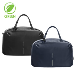 Borsa weekend impermeabile Urban con cerniera autobloccante in metallo. la sua struttura leggera ma resistente, realizzata in pu resistente all’acqua e dotata di una cerniera impermeabile, mantiene i vostri oggetti all’asciutto. Con uno scomparto spazioso porta pc fino a 16″ e una tasca interna in rete. Tasche anteriori e posteriori, fodera in poliestere riciclato tracciabile AWARE™.