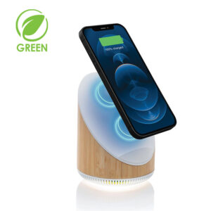 Lampada da tavolo di pregio realizzata con plastica ABS riciclata certificata RCS, alluminio riciclato e bamboo 100% certificato FSC. Contenuto totale riciclato: 59% in base al peso totale dell’articolo. La certificazione RCS garantisce una catena di approvvigionamento dei materiali riciclati completamente certificata. La lampada da tavolo funziona per 18 ore con una singola carica e può essere ricaricata in 2 ore. Con batteria di grado A da 1800 mAh e input type C (5V/1A). Con due modalità (luce calda e luce bianca) che possono essere regolate dal sensore touch alla base. Ricaricabile tramite USB-C.
