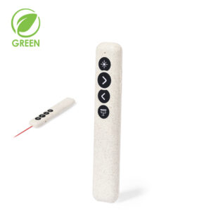 Elegante puntatore laser di classe 2 con connessione USB realizzato in fibra di grano. Appositamente progettato per le presentazioni, incorpora un pulsante di attivazione laterale, con pulsanti di avanzamento, pausa e riavvolgimento. Alimentazione a batteria: 1xAAA inclusa. Presentato in una scatola dal design kraft.